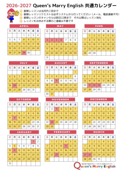 2026-2027 Lessonカレンダー